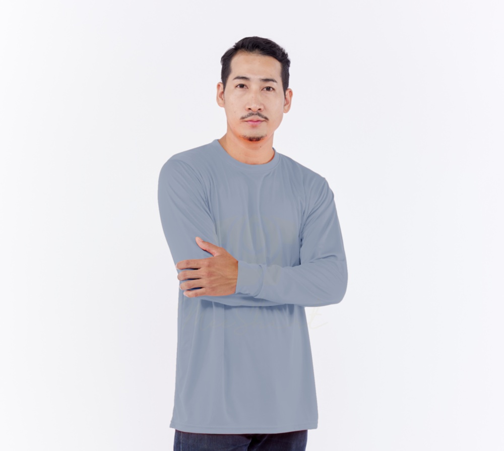 เสื้อคนงาน คอกลม แขนยาว ผ้าไมโคร (Micro) สีเทาอ่อน