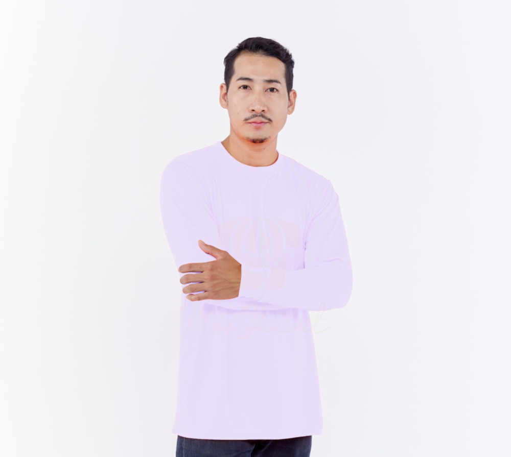 เสื้อคนงาน คอกลม แขนยาว ผ้าไมโคร (Micro) สีขาว โอโม่