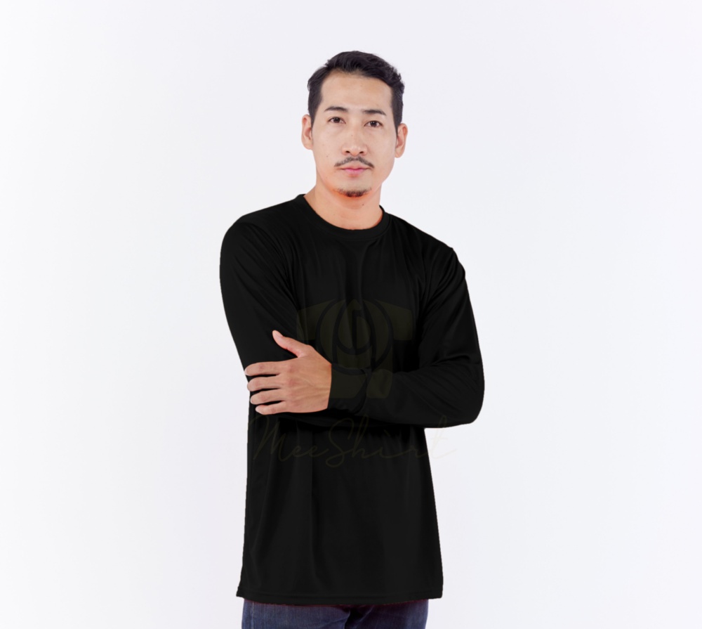 เสื้อคนงาน คอกลม แขนยาว ผ้าไมโคร (Micro) สีดำ