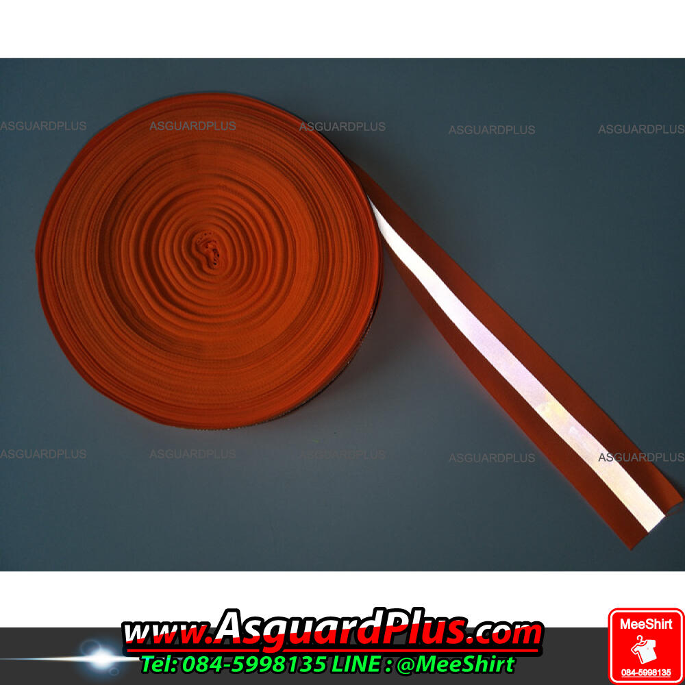 แถบผ้าสะท้อนแสงส้มคาดเงิน Reflective Fabric